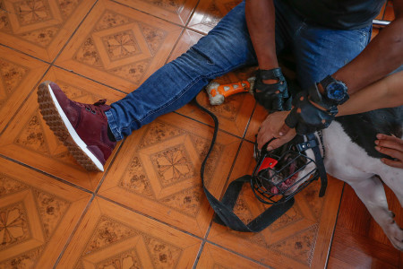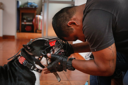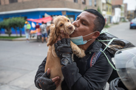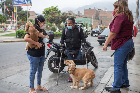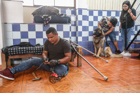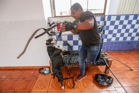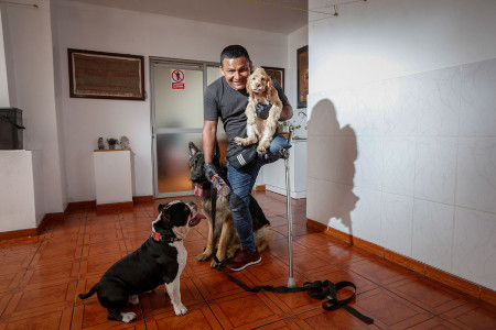Para Giancarlo Alva un ex militar de 38 años y padre de familia, el amor hacia los perros, no tiene límites. Desde hace un tiempo tiene una misión muy importante: Rehabilitar canes con conductas agresivas. Giancarlo sufrió un accidente vehicular y perdió una pierna. Esto no fue impedimento. El apoyado con sus muletas, camina y hasta sube cerros para realizar su trabajo. Para él, a pesar, de ser una persona con discapacidad esto no es un obstáculo para realizar su labor, al contrario, lo hace con el sumo compromiso de ayudar a las familias que pasan por estos problemas. Giancarlo, antes de poder entrar al domicilio de la familia y ver el caso del can, conversa primeramente con ellos. ¿Desde cuándo tiene el comportamiento el perro?, ¿Sufrió alguna agresión, antes?, son preguntas fundamentales antes de ver al perro y comenzar con la rehabilitación. Para lograr esta difícil tarea, utiliza métodos para que el can se tranquilice. Ocupa su territorio y mediante su voz fuerte, utiliza palabras y movimientos tácticos, para que el perro se inmovilice y se relaje. Mayormente cuando Giancarlo inicia este proceso, el can hace movimientos bruscos que un primer momento son difíciles de controlar. El graba el proceso de rehabilitación al can con el objetivo de concientizar a las personas, de que, los perros con conducta agresiva no son un peligro, si no, que tienen un proceso de rehabilitación y ser convertirlos en animales sociables. Giancarlo, después del accidente vehicular que le hizo perder una pierna, tuvo un difícil proceso de recuperación, no se rindió y siguió adelante. La prótesis de su pierna es un claro ejemplo de ello. En su depresión por lo ocurrido, Giancarlo escucho la palabra de Dios. Él lo guio y le dio las fuerzas para encomendarle esta misión humanitaria: El de ayudar a rehabilitar perros y tengan una mejor vida. Posdata: Giancarlo tiene un centro de rehabilitación canina llamado “Patitas Felices” en Ancón. Él trabaja ahí con sus hijos, quienes también tiene la pasión por cuidar a los perros.