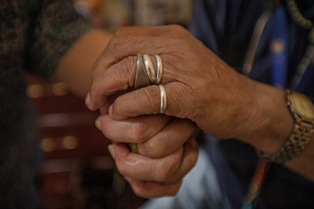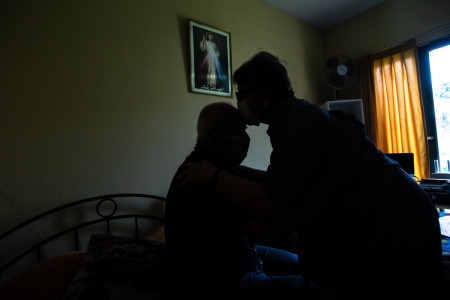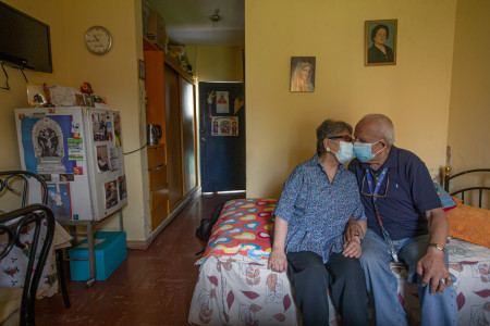 El hogar Canevaro, guarda un sin números de historias por contar. Dentro de cada habitación se guarda aquellos recuerdos que en el pasado fueron mejores hasta el día de hoy. Para los esposos Carlos Enrique del Busto Ezeta de 83 años y Lucrecia Vásquez Maqueira de 84 años, ambos de Lima, el amor verdadero significa: confianza, paciencia y perdón. Palabras pilares que fortalecen, cada día, sus lazos de amor. Ellos llevan más de 50 años de casados y desde hace ocho años viven en el hogar canevaro, decisión que tomaron juntos hasta los últimos días. Ellos, no pudieron tener hijos por cosas del destino. Don Carlos de joven tuvo un accidente en donde perdió la pierna y un año estuvo hospitalizado. En esos tiempos difíciles estuvo Doña Lucrecia cuidándolo y al año siguiente se casaron. Cada 14 de febrero ellos renuevan sus votos de matrimonio, como símbolo de amor eterno. Antes de la llegada del coronavirus, hacían una ceremonia en el hogar canevaro. Ella se vestía de blanco y el de terno y se casaban nuevamente jurándose con un beso, su amor eterno. En estos dos años de pandemia, no se pudo hacer las ceremonias de sus votos de matrimonio. Carlos y Lucrecia, esperan con muchas ansias que pase toda esta etapa del Coronavirus para sellar, como todos los años, su voto de nupcias. Ellos lograron pasar los tiempos difíciles del COVID -19. Ahora vacunados, cada uno con su respectiva dosis, viven con mucha más tranquilidad.  Con un beso en la frente y con los innumerables cuadros de fotos en su habitación pasan los días, el uno del otro.