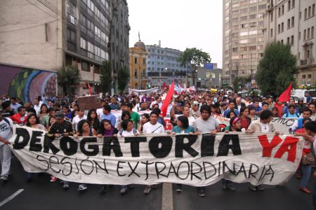 Todos a las calles. La Ley Nª 30288, más conocida como la “Ley Pulpín”, establecía un régimen laboral limitado para los jóvenes trabajadores de 18 a 24 años de edad. Esto generó una gran disconformidad por considerarla inconstitucional, porque planteaba la eliminación de las gratificaciones, seguros de vida, vulneraba los derechos laborales de los jóvenes, entre otras cosas. Se realizaron grandes marchas por la ciudad de Lima y otras ciudades del Perú, con el principal objetivo de luchar para alcanzar la justicia social y el respeto de los derechos laborales y económicos. La Ley Pulpín fue promulgada por el presidente Ollanta Humala el 15 de diciembre de 2014 y publicada el 16 de diciembre en El Peruano. Las marchas contaron con el apoyo de diversas personalidades, incluyendo congresistas, periodistas y activistas, así como la Confederación General de Trabajadores del Perú (CGTP). Durante los meses de masivas marchas, hubo varios enfrentamientos con los efectivos policiales. Se registraron detenciones arbitrarias y abuso de autoridad. La presión social y el alza de voz de las marchas juveniles, llevó al Congreso a anular la ley el 26 de enero de 2015, marcando una victoria para los ciudadanos. La abolición de la ley fue una victoria rotunda para el movimiento juvenil peruano, demostrando la efectividad de la protesta, la organización social y el júbilo de los ciudadanos. Años después, en 2017, el debate volvió a surgir con la llamada "Ley Pulpín 2.0", evidenciando la continua preocupación por la flexibilización del mercado laboral y los derechos de los jóvenes.