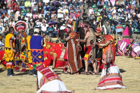 El Inti Raymi, que en el idioma quechua significa "Fiesta del Sol", es una ceremonia incaica ancestral, el cual, honra al Inti, el dios Sol. Se celebra cada 24 de junio en el Cusco y conmemora el solsticio de invierno. Esto, marca el inicio de un nuevo ciclo agrícola que busca la prosperidad para las cosechas. La celebración moderna es una recreación teatral que involucra rituales, danzas y personajes históricos como el Inca, quien sale primero del palacio del Qorikancha junto a un gran número de actores, los cuales, representan a los súbditos y ciudadanos del antiguo imperio del Tahuantinsuyo. En medio de un gran número de visitantes, nacionales y extranjeros, el Inca inicia su recorrido por las calles principales del Cusco. La imponente presencia del gobernador del Tahuantinsuyo es admirada por los visitantes que esperan desde tempranas horas de la mañana para presenciar este evento cultural. Junto al Inca, le acompaña su esposa, la Coya quien siempre sonriente es llevada en andas por la ciudad imperial. El último acto es en la explanada de la fortaleza de Sacsayhuamán. El Inca ingresa y se presenta ante su pueblo. Los tambores retumban sobre los oídos de sus súbditos, que inmediatamente danzan para honrar al dios Inti. El inca da las palabras del inicio del nuevo año y sacrifica una llama en honor a la Pachamama, la madre tierra. Con este último acto, el inca es llevado en andas. Él alza sus manos directamente al Sol y pide buen augurio para los años siguientes. El inca se despide, al mismo tiempo que se oculta el sol y se enrumba nuevamente a la ciudad imperial, donde se pierde entre el júbilo de los ciudadanos. Junio es considerado un mes sagrado y festivo en todo el departamento del Cusco. Las tradiciones y fusiones de las culturas del mundo en el Cusco se han anexado hasta convertirse en una sociedad cosmopolita. Esto con el objetivo de desarrollar un turismo sostenible, responsable y seguir fortaleciendo los lazos sociales de todo el mundo, sin perder su esencia cultural, la descendencia andina.