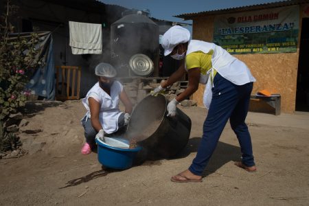 Las ollas comunes son iniciativas comunitarias. Mayormente son organizadas por mujeres, que unen recursos y esfuerzos vecinales. Se autogestionan para comprar, cocinar y distribuir comidas nutritivas a personas vulnerables que enfrentan pobreza, desempleo o falta de acceso a alimentos. Esto con el objetivo de dar un apoyo solidario en tiempos de crisis. Las ollas comunes se instalan en las partes más altas de los asentamientos humanos de cada distrito de la ciudad de Lima. En tiempos del COVID-19, fueron de gran ayuda para los cientos de ciudadanos en pobreza y en situaciones vulnerables. Los alimentos se repartían por sectores y en forma ordenada, dando prioridad a los niños y madres de familia; el compromiso era uno solo: La ayuda comunitaria en cada sector vulnerable. En la actualidad se han registrado unas 1760 ollas comunes en Lima Metropolitana