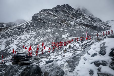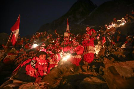Es la 1:30 de la madrugada del martes 17 de junio y mientras todos celebran el día central del Tayta Quyllur Rit'i, la Nación Quispicanchis, una de las más antiguas, inicia su caminata hacia el nevado Colque Punku (5000 m.s.n.m. aprox). La trayectoria es de subida y no es nada fácil, especialmente, si uno no está acostumbrado. Un poco de alcohol, hojas de coca y prueba de fe, nos hace sacar fuerzas para seguir hacia el campamento donde se encuentran reunidos las demás delegaciones de la Nación Quispicanchis. A las 3:00 am es la reunión general en lo alto de nevado. Los miembros de la N. Quispicanchis descansan en medio del frio del glaciar y esperan al amanecer para poder ser bendecidos por el nevado, que es, considera un Apu sagrado. Se sacan los sombreros y se inicia el proceso de los rezos y deseos de fe, el cual, se unen con la religión de la cosmovisión andina. Este fervor sagrado es plasmado en la cruz, en lo alto del nevado. Una vez terminado el ritual sagrado, todos los miembros de la N. Quispicanchis bajan jubilosamente con banderas en alto y cruzando los nevados hacia el templo del señor de Quyllur Rit'i. Ellos Son bendecidos nuevamente y la cruz es guardada sigilosamente hasta el iniciar el recorrido de las 24 horas. Algunos se retiran con el deseo cumplido y otros se inician en esta peregrinación sagrada, pero todos miramos hacia los nevados y nos prometemos hacia nosotros mismos, volver el siguiente año.